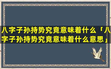 “八字子孙 🐵 持势”在命理学中指命局中出现了一种特殊格局,其特点如下:
