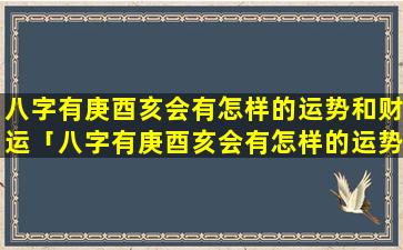 庚金生财庚金:主 🐧 财,酉金,和,亥水生庚金此组合的人财运较好容易获得稳固的 🐕 收入。