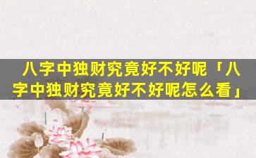 八字独财的 🦋 好 🦁 坏取决于以下几个因素: