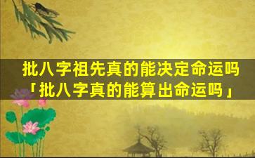 批 🍁 八字祖 🌼 先不 🌲 能决定命运。