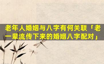 老年人的婚姻取决于 🐵 命格中与婚姻 🕷 相关的组合。例如: