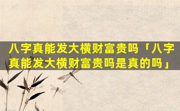八字算命是一种中国传统命理学,认为人的出 🌼 生时间决定了其一生的运势。关,于八字。能否发大横财富贵的争论由来已久没有科学依据