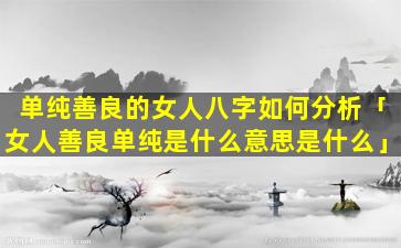 综合分析若女命八字具备以 🐧 下特征 🦊 ,则 🌳 表示为人单纯善良: