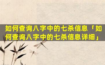 查 🐟 询八字中的七 🐯 杀信息