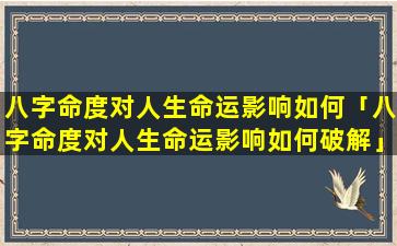 八 🐋 字命度对人生命运的影响解决方 💐 法