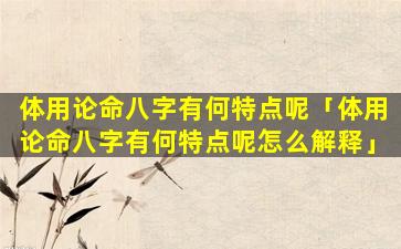 体用 🦈 论命八 🪴 字 🐞 的特点
