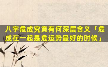“八字中危”通常 🐡 由多种因素组合而成,具体含义取决于八 🐱 字的整体格局和具体情 🐒 况。