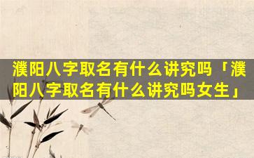 八字取 🐴 名是中国传统文 🐘 化中取名的重要方法之一,濮阳地区也有其独特的讲究。