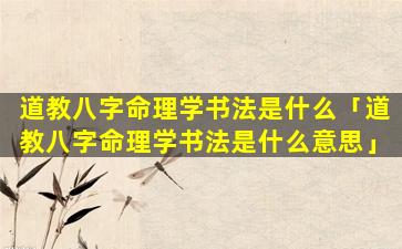 没有一本书叫“道教八字命理学书法八字命理学”。和书 🐠 法。是不同的领域