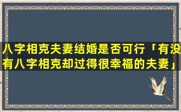是的,确实有八字相克却过得很幸 ☘ 福的夫妻八字相克 🌹 。只是,根。据,生,辰八字推算的一种理论并不能完全决定婚姻的幸福程度夫妻之间是否幸福取决于许多因素包括性格、价、值。观沟通方式和共同目标等 🦢