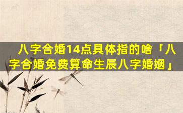 八字合婚 14 点 14 是指在八字合婚过程中 🦟 考虑的个主 🦁 要因素: