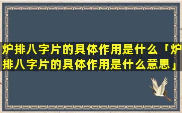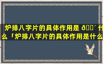 炉排八字片 🍁 的主要作用如 🐕 下 🦆 :