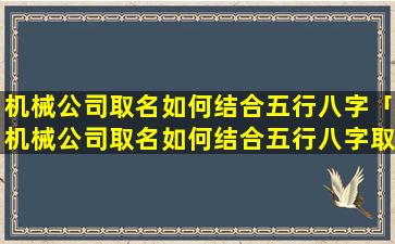 结合五行和八 🌹 字属性,可以得到 🌳 以下适合机械公司 🦅 的名字: