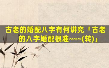 古老的婚 🌴 配八字 🐴 讲 🐬 究