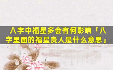 八字中福 🐶 星多会 🦢 有以下 🐴 影响: