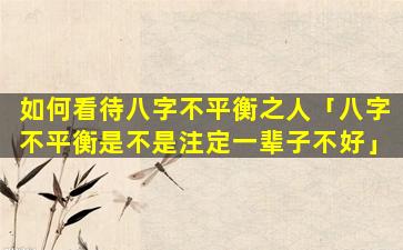 八 🪴 字不平衡是 🐎 否注定一辈子 🌷 不好