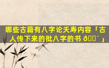 八字 🐯 古籍的传 🦢 承