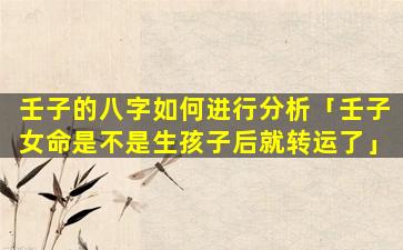 因此,壬子女 🕷 命是否生孩子后转运需要综合分析八字命理、大,运流年等因素不能笼统判断。建。议咨询专业命理师进行详细分析