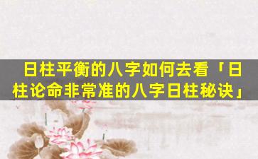 日柱平衡的八字是指天 🦋 干地支相生相合,五,行流通顺畅 🦆 阴阳调和的八字。这,样的八字。往往福祸相依总体上吉多凶少