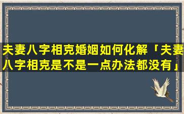 “夫妻八字相克 🍀 婚姻如何化 🦈 解 🌿 ”
