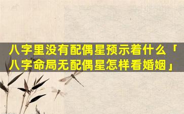 在八字命理学中,“配偶星”代表命主的伴侣。如,果八 🌾 字中没有配偶星通常被解读为: