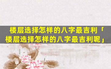 八字中五行相生相克,不 🦢 ,同的楼层五行属性不同选择与自己 🌻 八字命理相符的楼层可以带来吉运。