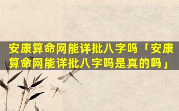 安康算命网是一个提供算命服务的网站。不过,它是。否能够详批八字 🐬 需要根 🕸 据其提供的服务内容来判断