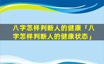 八 🦆 字命 🦈 理中判断健康程 🦊 度的方法