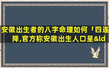 安徽 🦈 省出生人口呈“断崖式下降趋势”,连续四 🐟 年下降 🐎 。