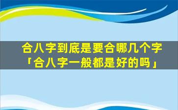 合八字要合几个 🍀 最好?