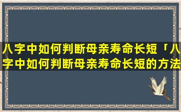 我不确定八字命理中是否有判断母亲寿命长短的方法八字命理是。一种古今中国用来预测一 🦊 个人命运的迷信系统,其 🦢 。科,学。准确性尚未得到证实因此我不建议依赖八字命理来判断亲人的寿命