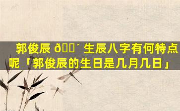 事业分析:八字中木代表仁慈善良,也是演 🐡 艺圈的代表元素。郭,俊。辰八字中木旺说明 🐟 他适 🦄 合从事演艺事业