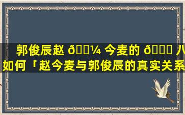 以下是一些证 🍀 据表 🐅 明赵今麦和郭俊辰只是朋友: