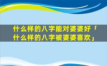有 🌿 利 🌹 于与婆婆关系好的八字特征: