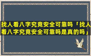 找人看八字是否安全 🐼 可靠取 🦍 决于以下因素: