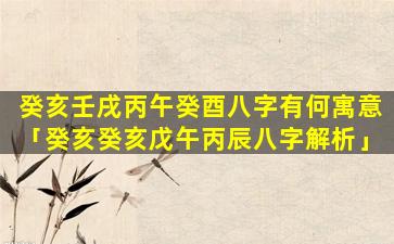 癸亥癸亥戊午丙辰 🐵 八 🌲 字解 🌸 析