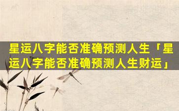 关于星运八字能否准确预测人生,目 🦢 前尚未有 🕸 科学证据证实其准确性。在,民。间星运八字仍然受到许多 🍁 人的重视和信仰
