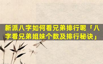 如何从 🦢 八字中看兄弟 🐝 姐妹排行