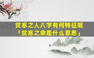 因此,“贫寒之命”指,的是一个人的生活贫困困苦命运不 🐡 济。