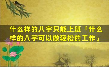 以下八字特征 🐺 的人可能更适合上班: