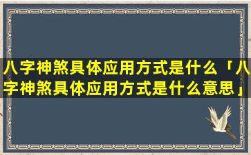 八字神煞的应用首先 🕸 需要结合八字命局的整体组合来判断。根据不同的神煞组合 🐞 ,可。以推断出不同的吉凶信息例如: