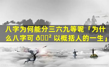 因此,在,看,八,字时不仅要考虑三六九等还要综合考虑其他因素才能对一个人的 🐡 命运做出较为准确的判断。