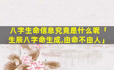 八 🌷 字生命信息是指通过一个人的出生年月日时八字(推),演出其一生的命运、吉凶祸福等相关信息八字命。理,学,认,为、每 🐘 个人的出生时、间。对应着特定的天干地支而这些天干地支之间存在着生克制化的关系从而影响着个人的性格运势人生轨迹