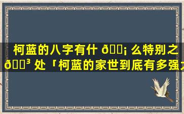 柯蓝的家 🌿 世背景赋予 🐠 了她以 🦈 下优势: