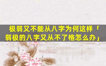 弱极的八字又从不了格的情况,可以考虑以下应对 🌴 方法: