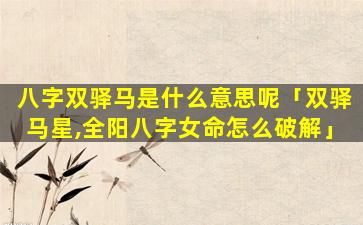 双驿马星全阳八字 🦊 女命破解 🍁 方 🕸 法