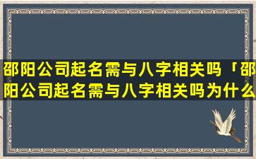 为什么邵 🌺 阳公司起名需 🐯 要与 🦊 八字相关?