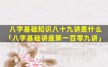 八字基础 🐞 讲座第 🌴 八十 🐞 九讲