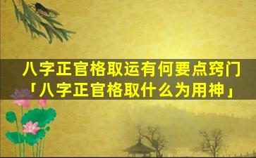 掌握 🌻 正官格的取 🐳 用神原则 🌻 。