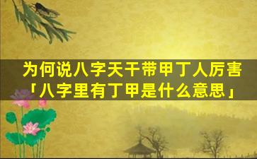 八字天干带 🐛 甲丁 🌺 人厉害的原因: